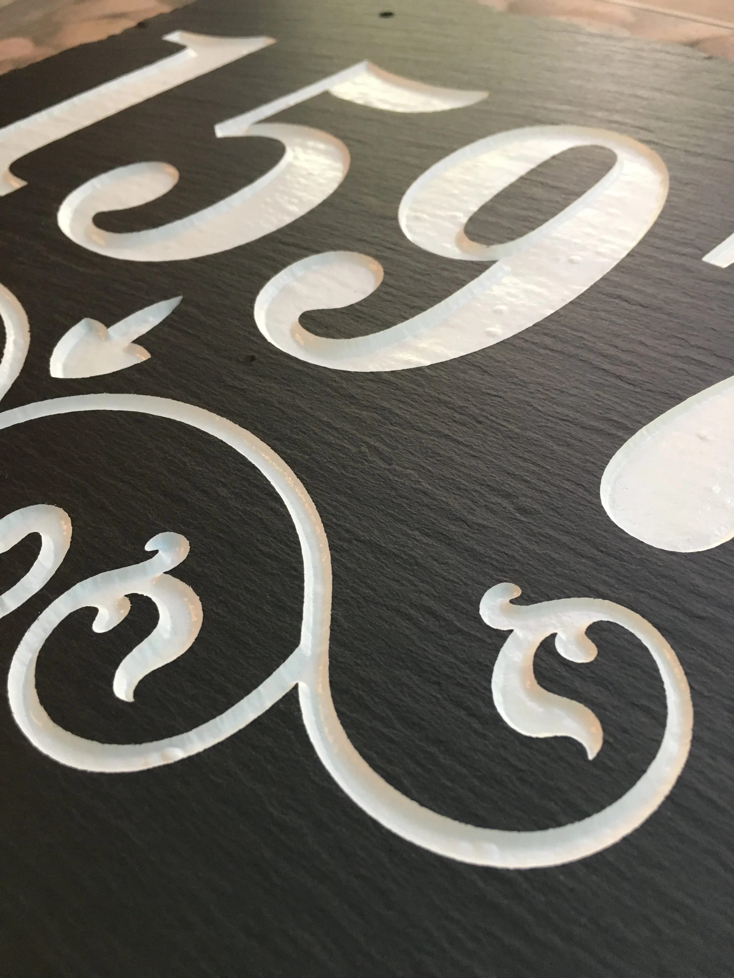 I also offer slate plaques! I do not keep them in stock so I would need to order them from the supplier before engraving. The slate comes with holes drilled and string for hanging. There are many shapes and sizes available...circle, square, rectangle,oval,tombstone , hearts and little circles for tree ornaments. Please contact me for a quote. I have posted a few pictures here for an example.